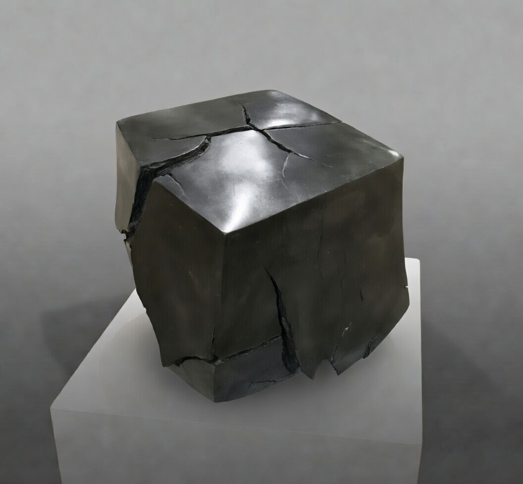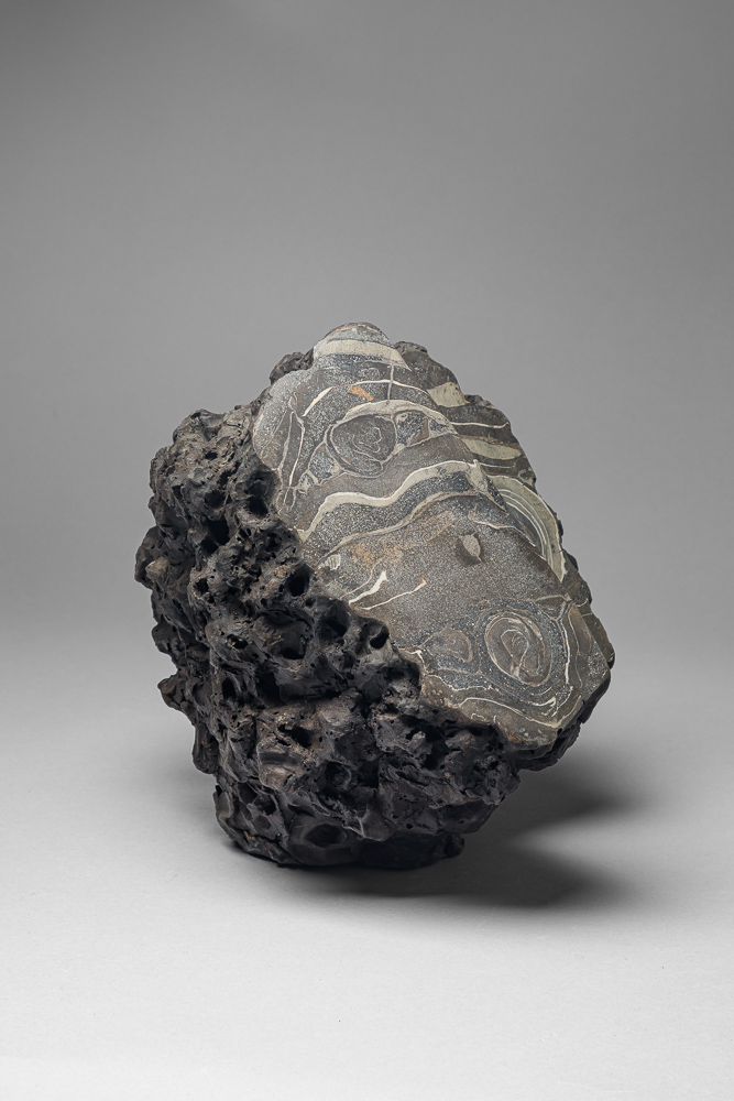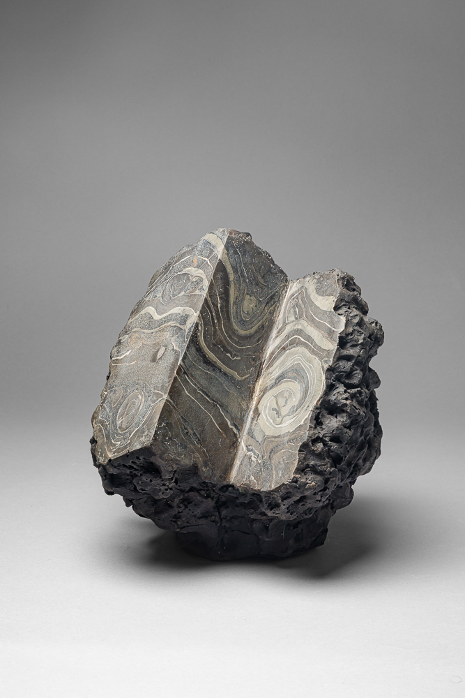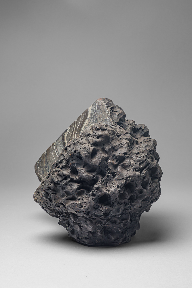 25. grès noir poli après cuisson 1250 ° (23X22X10) cm.Le craquelage est obtenu en posant une terre humide sur une terre sèche . Polissage après cuisson.