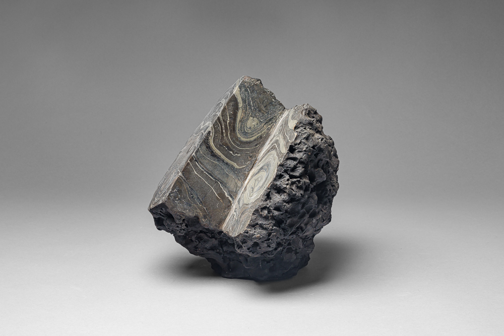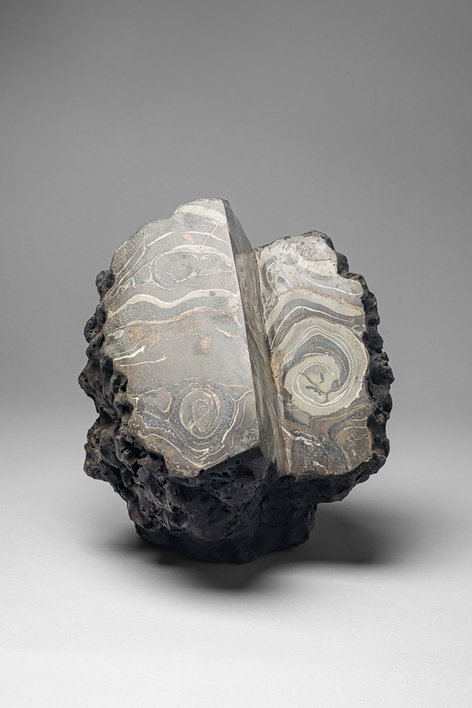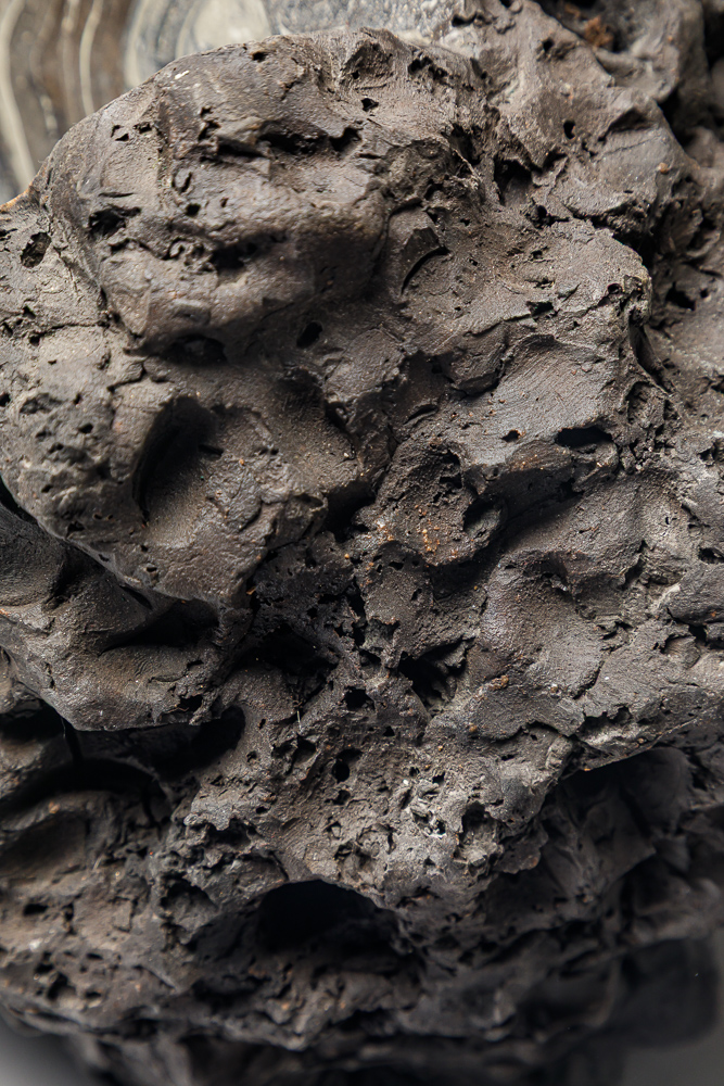 Grès cuisson 1300° de 5 jours/nuits, four anagama, polissage après cuisson , nouvelle cuisson 1000° et enfumage, polissage. P. Vangysel.