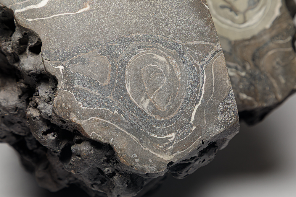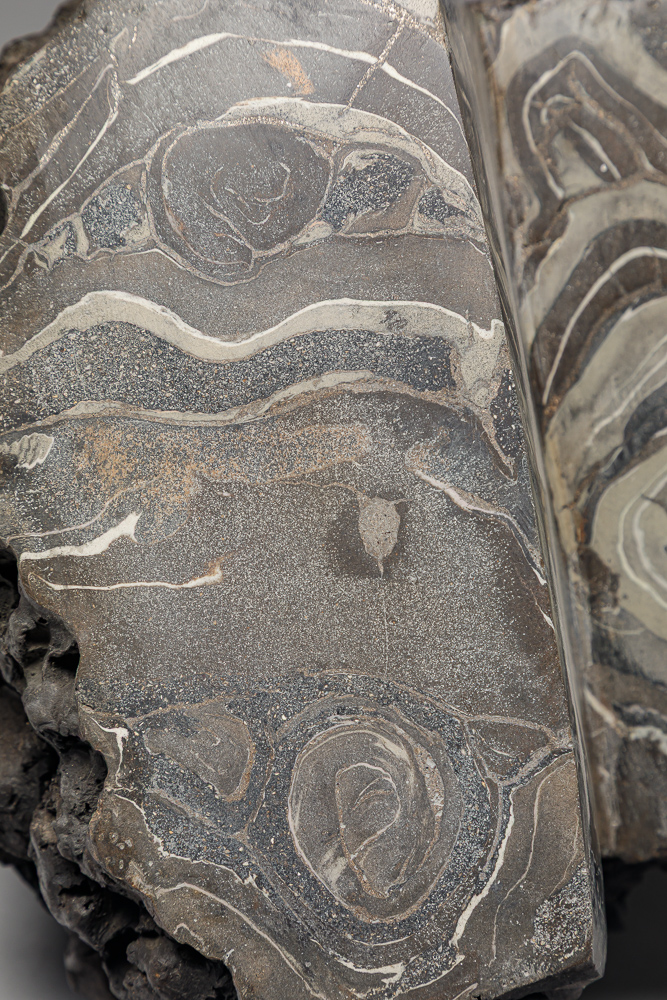 34. Polished clay, smoked and partially de-smoked.